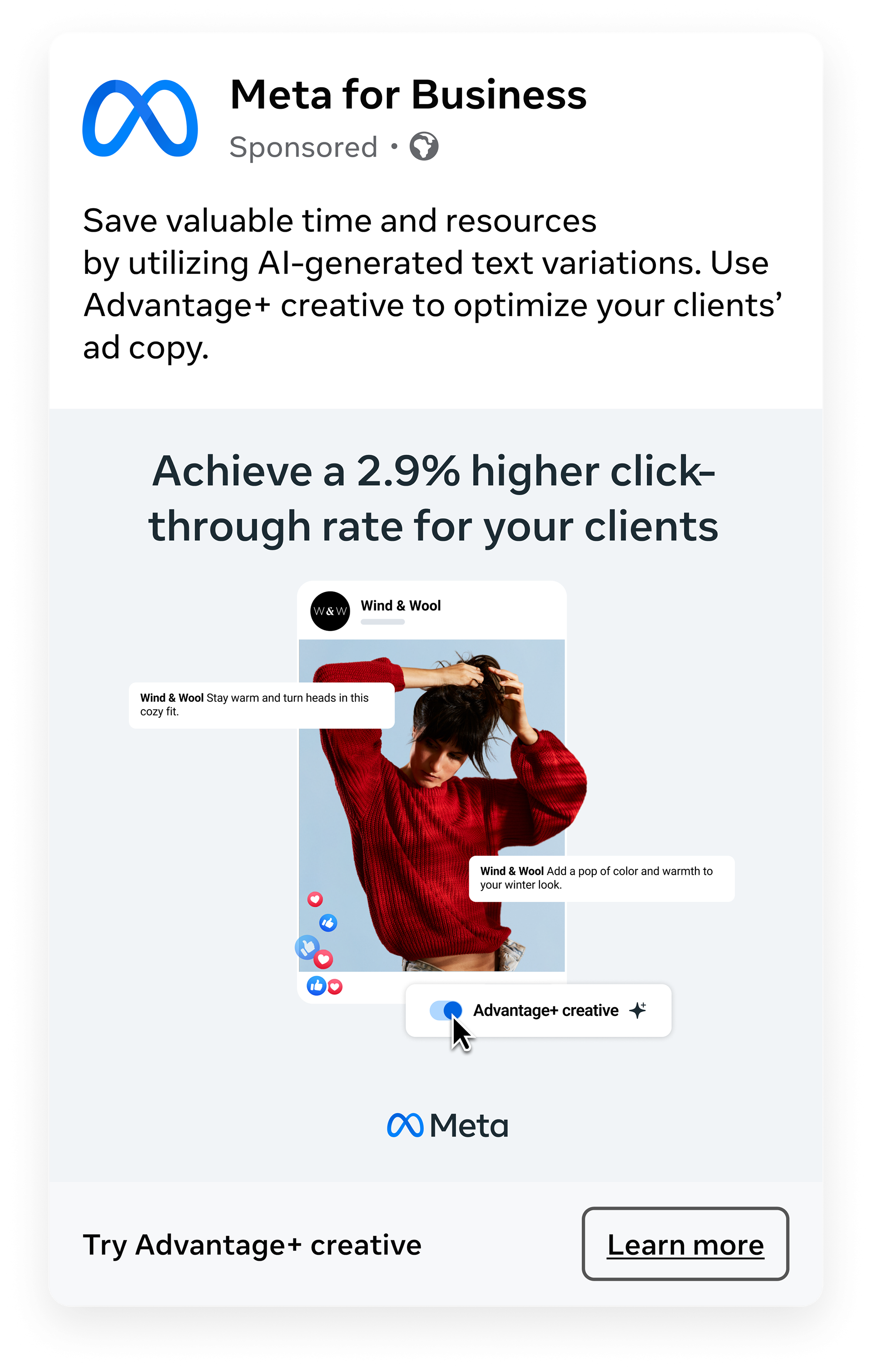 A massive focus for Meta has been their GenAI that's designed for large agencies and advertisers. To encourage adoption, we created a campaign highlighting exclusive features along with cold, hard proof points.